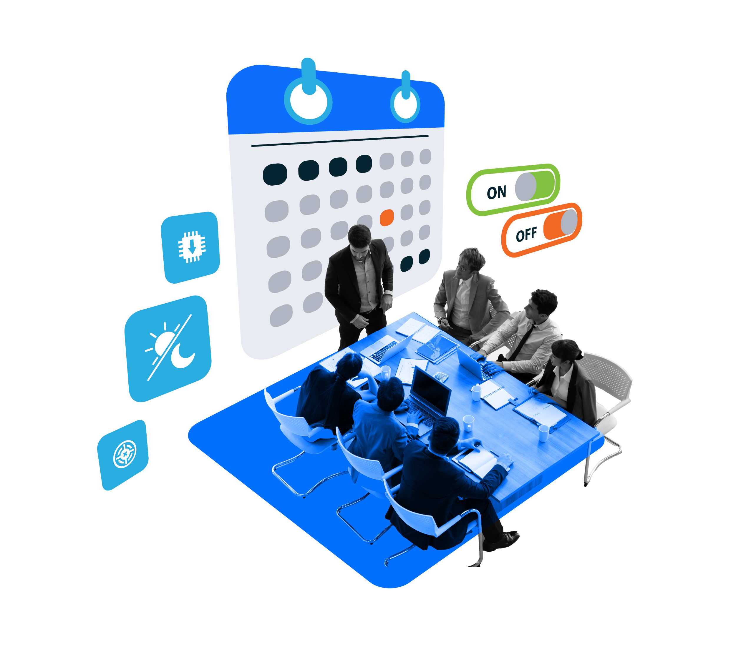 Automate “all on” and “all off” functions each workday (accounting for weekends and holidays). Schedule events, such as system scans and firmware updates. Create automated room scenes, “start meeting” settings, and self-healing processes.