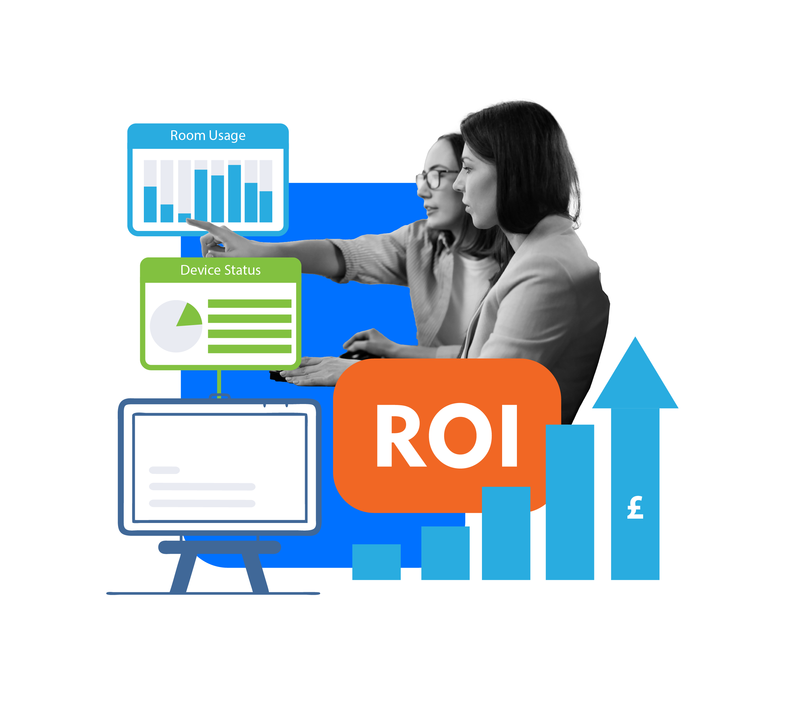 Quantify and report on cost reductions, ROI, and increased productivity. Generate reports illustrating system and device performance. Gain insights about room and device usage to make data-driven improvements. Understand and improve workflows.